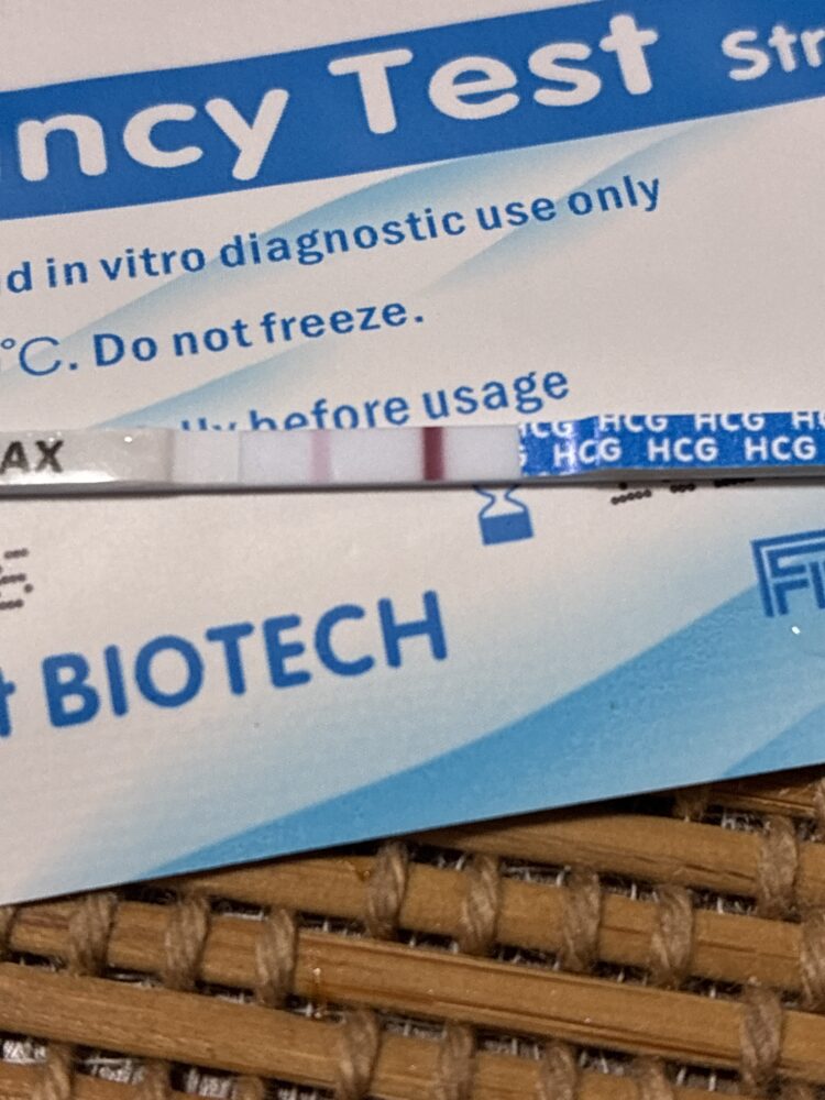 そうですね、写真でははっきりとは確認できませんが、確かに薄い線が見えているように感じますね。 非常に薄い線ですので、蒸発線の可能性も考えられますが、妊娠のごく初期である可能性もあると思います。