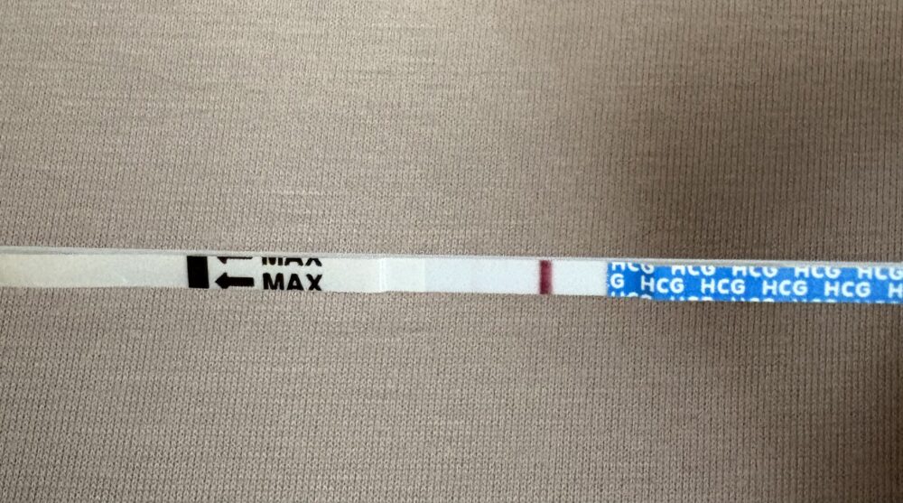 正常妊娠する場合、hCGホルモンは日に日に増加します。48時間以上経ってから、朝一番の尿で再度検査をされると、結果がより明確になると思います。