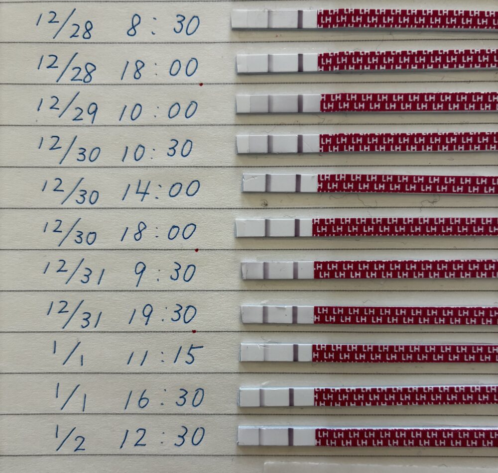 また、今回の排卵検査の結果もご確認いただき、いつ排卵したのか今後のために教えていただければありがたいです。