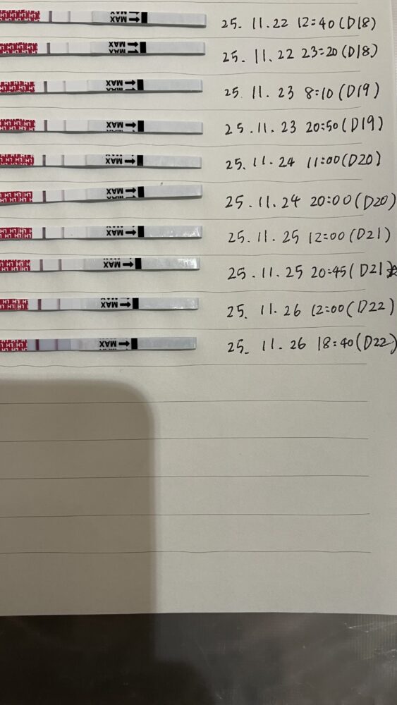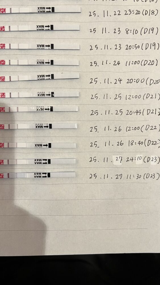 1/28(D19)の13時と21:30も陽性反応が続き、1/29(D20)は完全に陰性反応に戻りました。