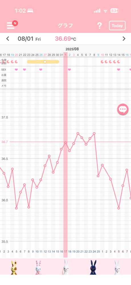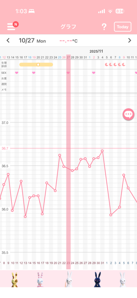 基礎体温は二相に分かれており、問題ございませんのでご安心ください。