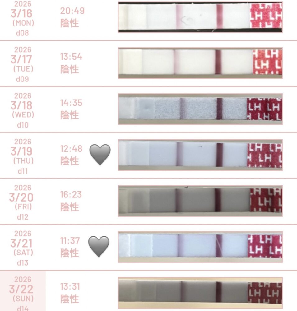 【排卵予定日:3/23】 排卵予定日より数日前から排卵検査薬を使用してますが、ずっと同じ濃さを保っています。 ①前周期に…