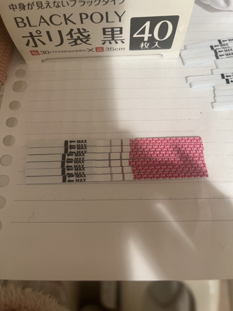 そして、排卵検査結果の保管について、1本ずつの写真だと、反応時間、撮影条件、光反射などにより、判定線の色が実物と相違することがあります。そのため、検査薬の持ち手部分に日付を入れ、検査済みの分をまとめて1つの写真におさめるほうが濃さの変化がわかりやすく、より正確な判断ができます。