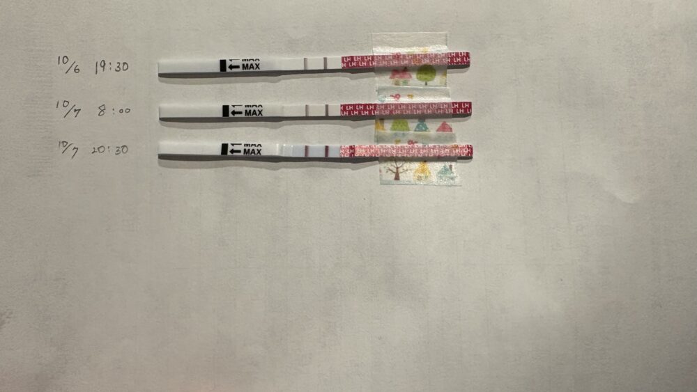10/6(D18)~10/9(D21)朝は陰性反応です。 排卵予測はまだできません。