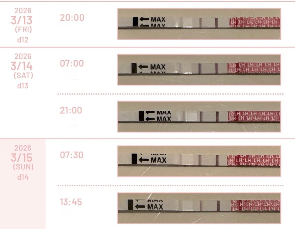 去年の4月から妊活を始め、排卵検査薬にはとてもお世話になっています。去年の8月に2回目の排卵検査薬を購入し、その月に妊娠することができましたが、11wで稽留流産してしまいました。また妊活をスタートしたので、排卵検査薬の判定について教えていただきたいです。 3/14は陽性であっていますか?排卵は3/15と考えられますか?