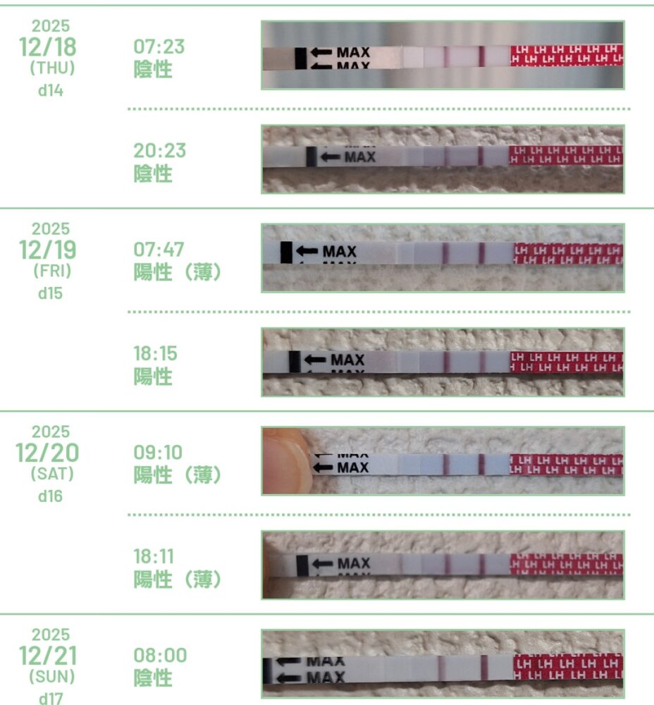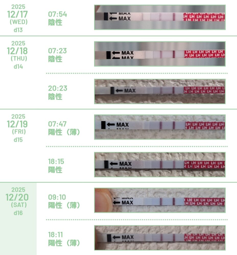 12/18(D14)夜まで陰性反応、12/19(D15)朝は弱陽性反応です。