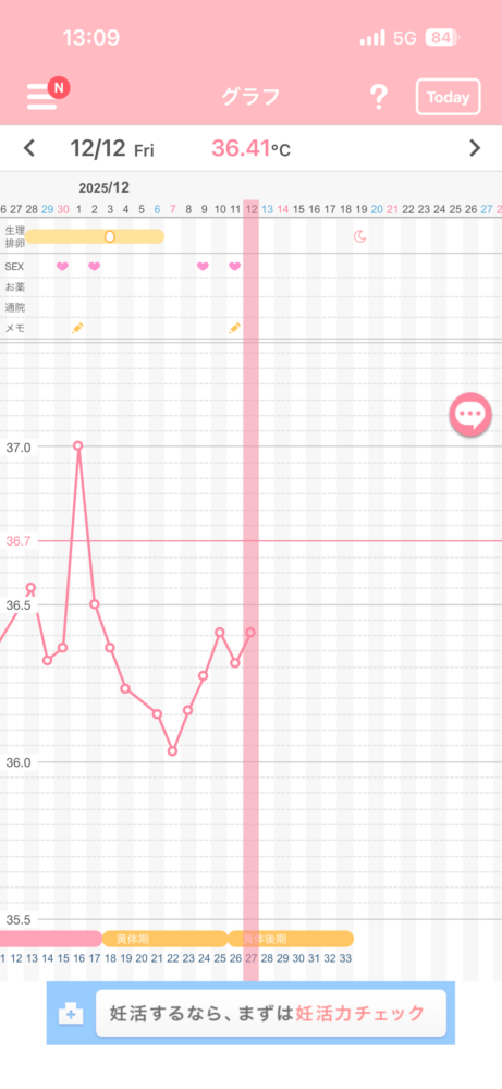 今周期は基礎体温を測られていますか? まだ低温が続いているでしょうか?