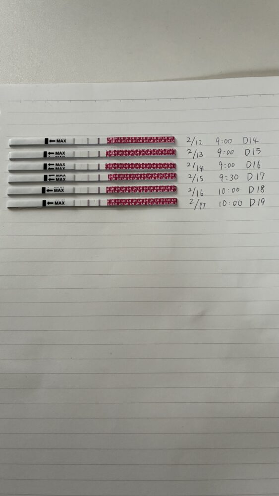 ちょっと不安があったので、昨晩2/16にタイミングをとり、本日2/17朝の段階で陽性反応が出ました。