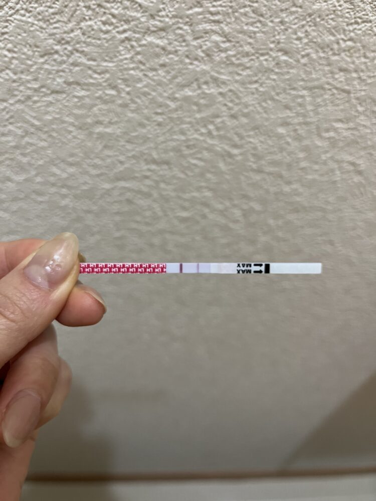 基準線に比べて判定線が薄いので、この1本は陰性反応です。