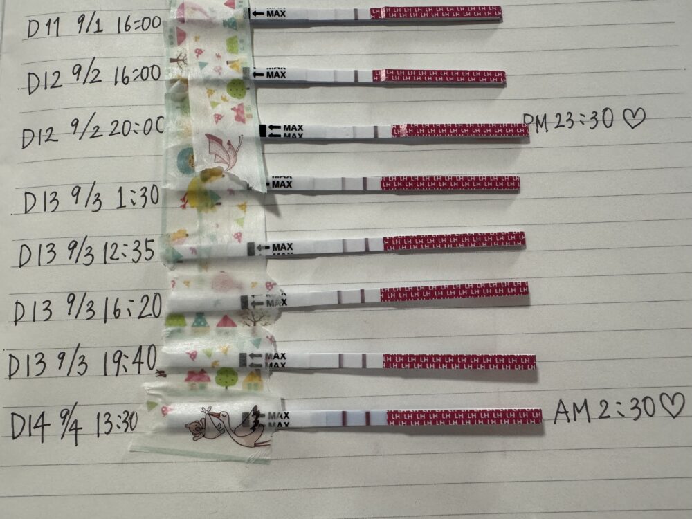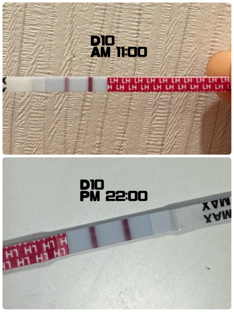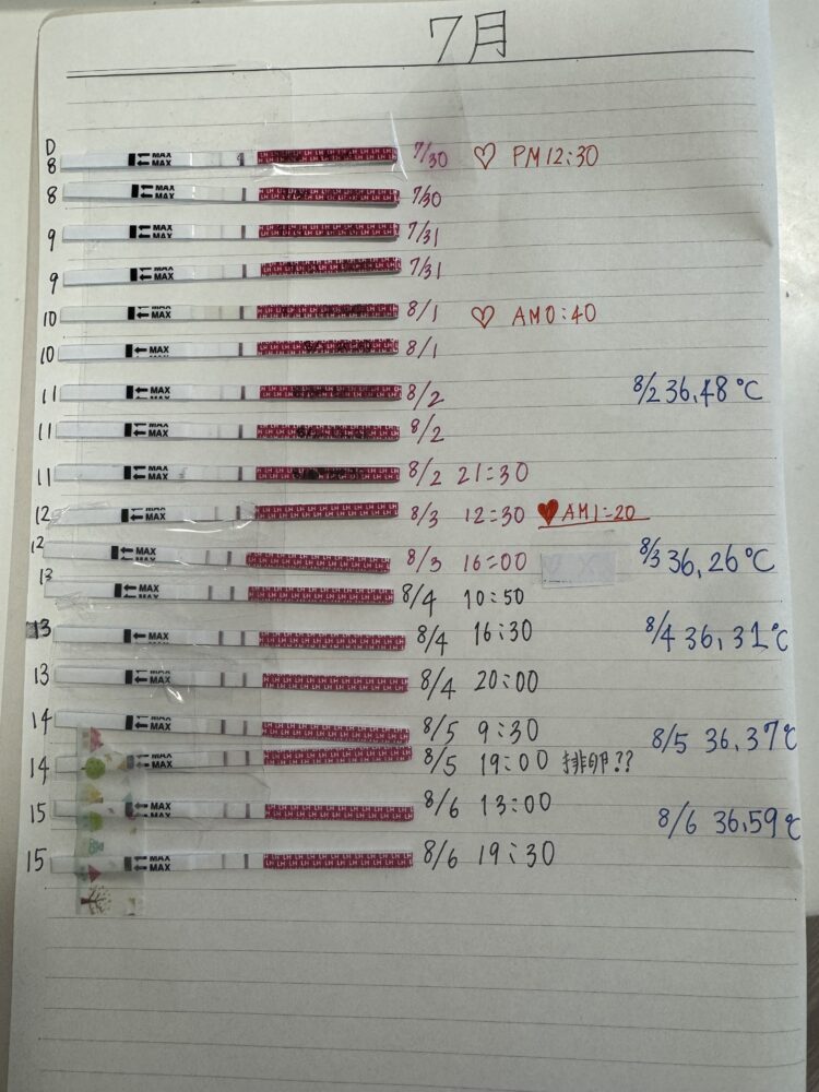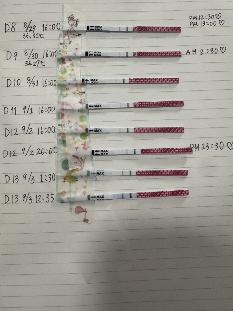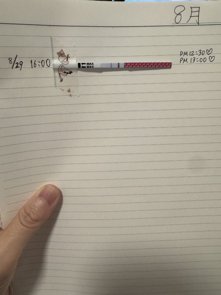 D8 – 8/29 16:00に排卵チェックをしたところ、7月記録のD12くらいの濃さでした。