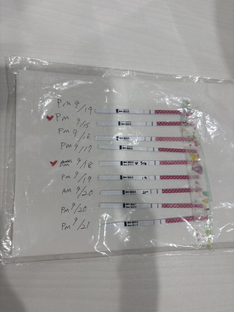 陽性反応を見逃さないため、※10~12時間間隔で1日2回(毎日大体同じ時間帯)※の検査をおすすめいたします。それによって、より確実に陽性反応が出始める時間帯を把握できますので、タイミングも取りやすくなります。