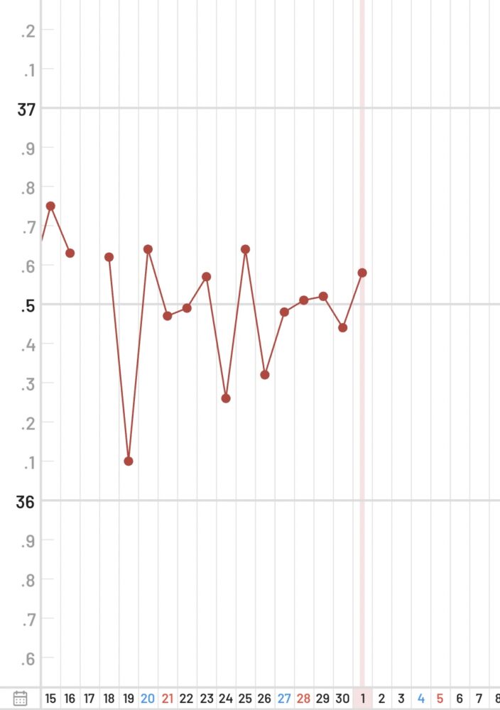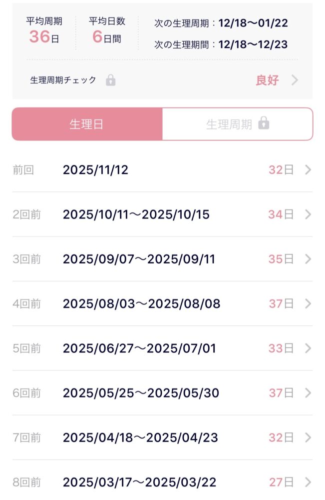 生理周期が全体的に安定してきていますね。とても良い傾向だと思います。