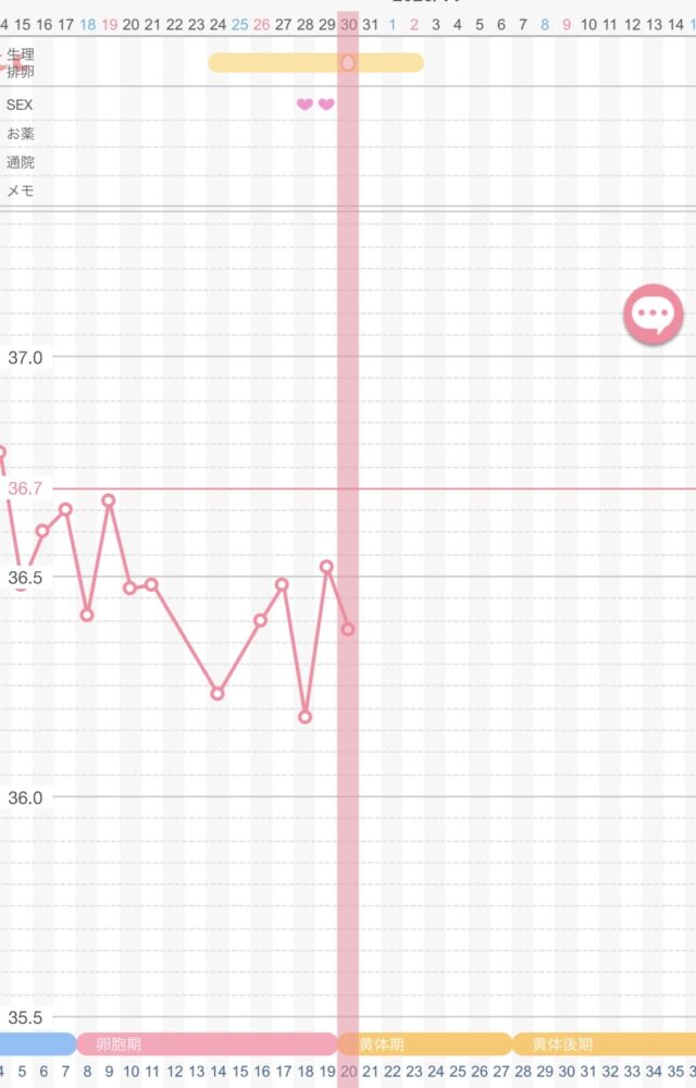 基礎体温の大きな上昇は見られませんが、28日朝晩、29日夜、30日夜にシリンジでタイミングをとりました。