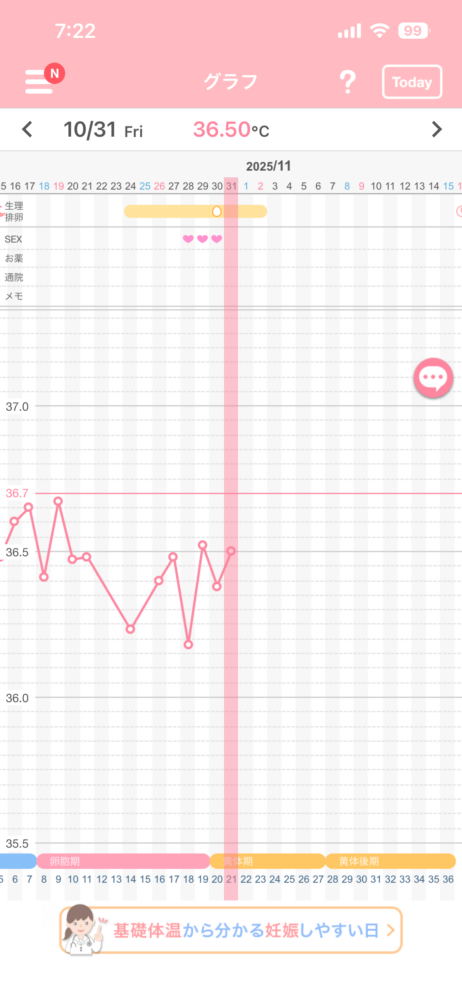今日基礎体温が下がりましたが、排卵はまだしていないと思います。