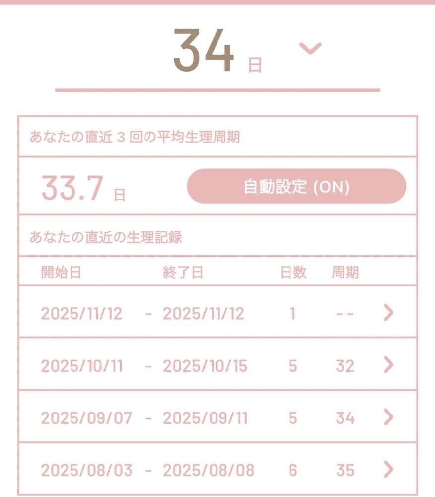 直近周期日数:34,35,37,33,37,32