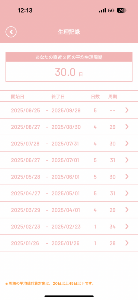直近半年の生理開始日、生理周期日数、高温期日数(わかる範囲で)を教えてください。