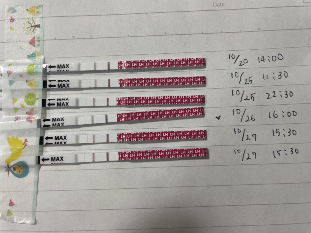 陽性反応を見逃さないためには、10~12時間間隔で1日2回(毎日大体同じ時間帯)の検査をお勧めします。これにより、陽性反応が出始める時間帯をより確実に把握でき、タイミングも取りやすくなります。