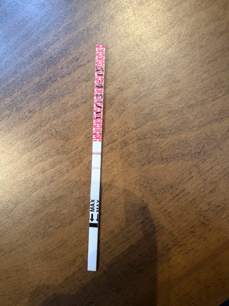 排卵検査薬は、体内のLHホルモンの急上昇(LHサージ)を検知して排卵日を予測する仕組みです。LHホルモンは普段からも分泌されているため、分泌量によっては、何も線が見えない(陰性反応)場合もあれば、このように薄い線が見える(陰性反応)場合もあります。基準線より薄い線は、「日常的なLH値」を示しているだけで、陽性反応ではありません。