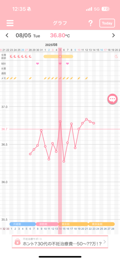 今回の排卵日はいつだと思いますか? タイミングは8/7以降はとれていないのですが、妊娠に繋がるタイミングは取れたのでしょうか?