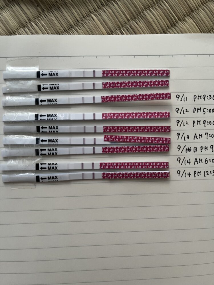 排卵検査薬の変化から見れば、9/14(D12)夜~9/15(D13)朝に排卵した可能性が高いです。