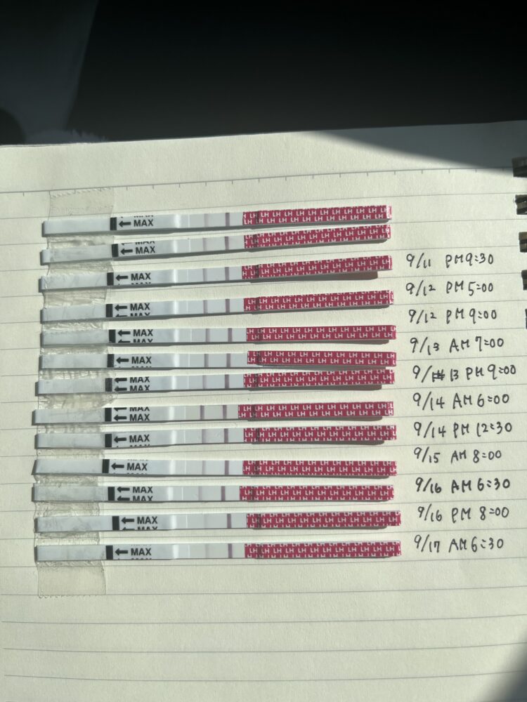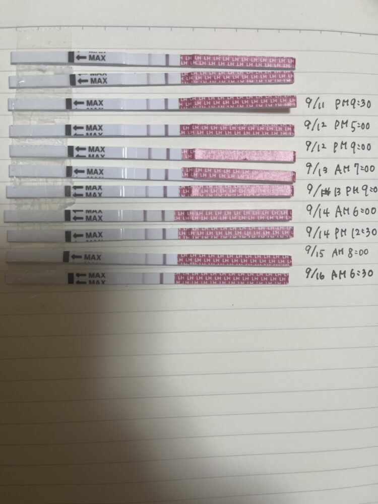 9/12午後から濃くなり始め、9/14朝6時は強陽性反応です。