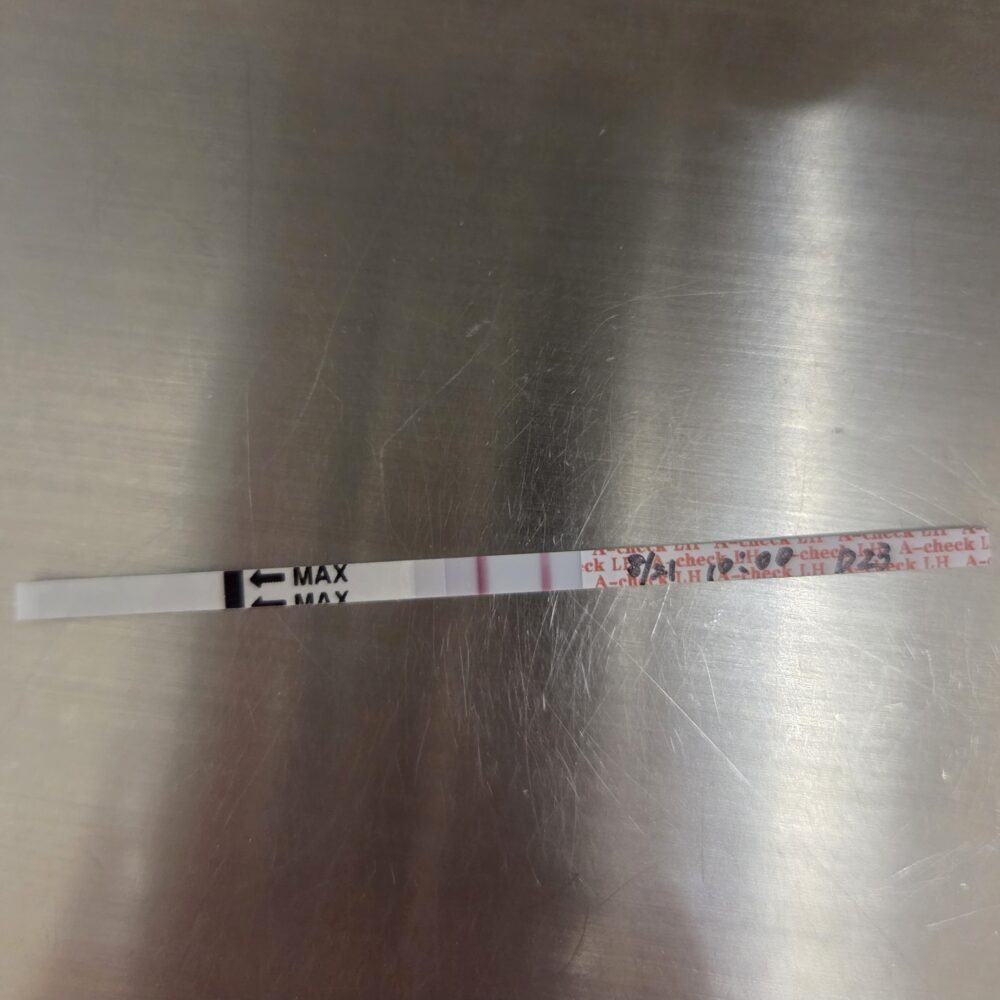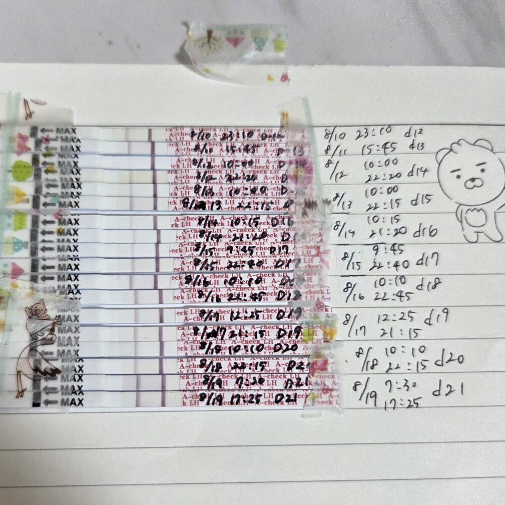 土日祝日はお休みのため、返信が遅くなり申し訳ございません。 画像を確認しました。 8/22夜まで陽性反応、8/23朝は陰性反応に戻りました。 排卵検査薬から見れば、8/22深夜~8/23(D25)朝の間に排卵した可能性が高いです。 排卵予測は合っています!
