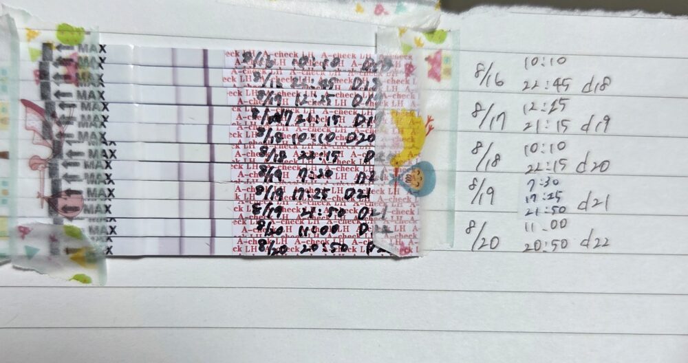 8/19(D21)は弱陽性反応です。 今夜タイミングをとることをおすすめします。