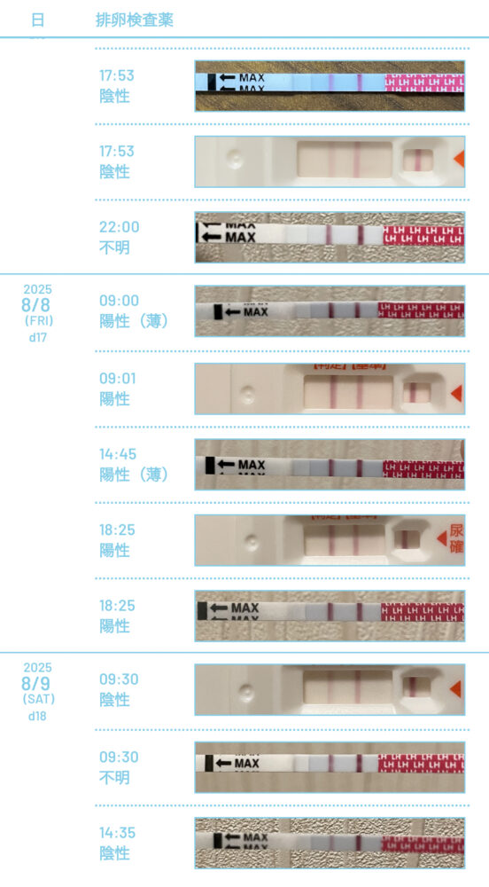 9/11は朝から強陽性と思われるくらいの反応が夜まで続きましたが夫の帰りが遅くタイミングはとれませんでした…