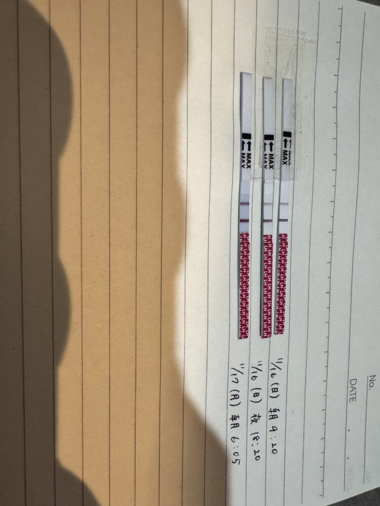 こんにちは。 11/16朝は弱陽性反応です。 このまま順調に行けば、今夜の検査で強陽性反応が確認できる可能性が高いです。