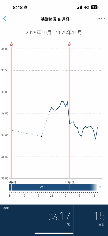 そこから中々基礎体温を計らず、今回久しぶりに測っているので高温期の日数が分かりません、ごめんなさい。