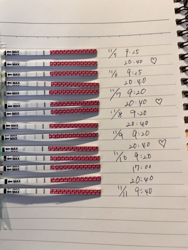 11/10(D17)から線が濃くなり始め、11/11(D18)の朝には強陽性が出ています。