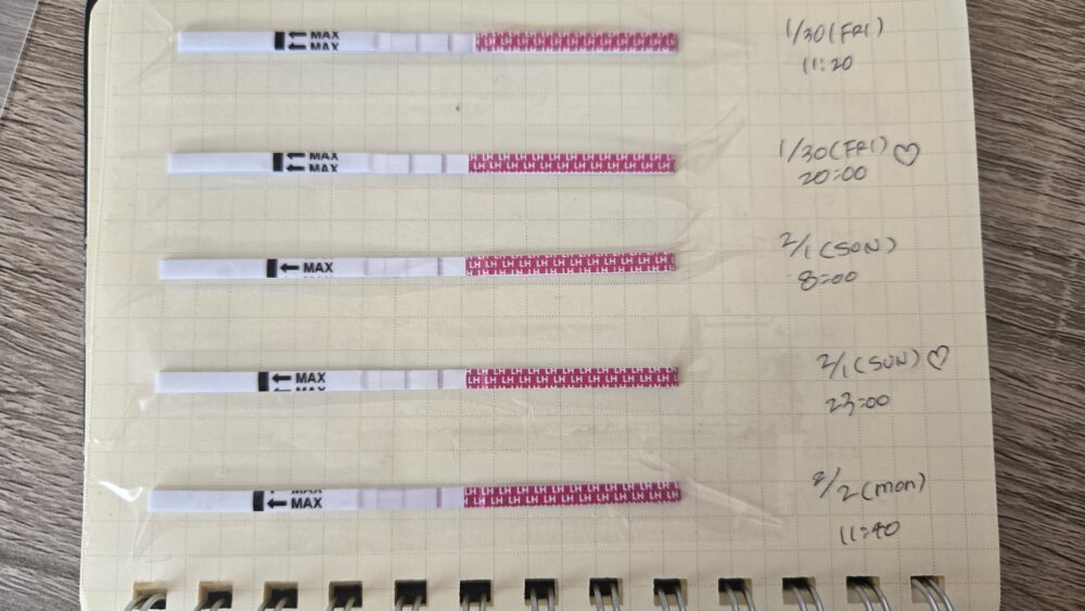 1/29~1/30に少し濃い目の反応でしたが、はっきりとした陽性反応ではありません。