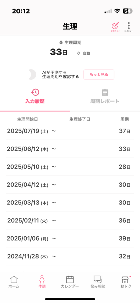 こんにちは。 画像を確認致しました。 生理開始日:6/12 直近周期日数:33,28,30,30,36,39,32,