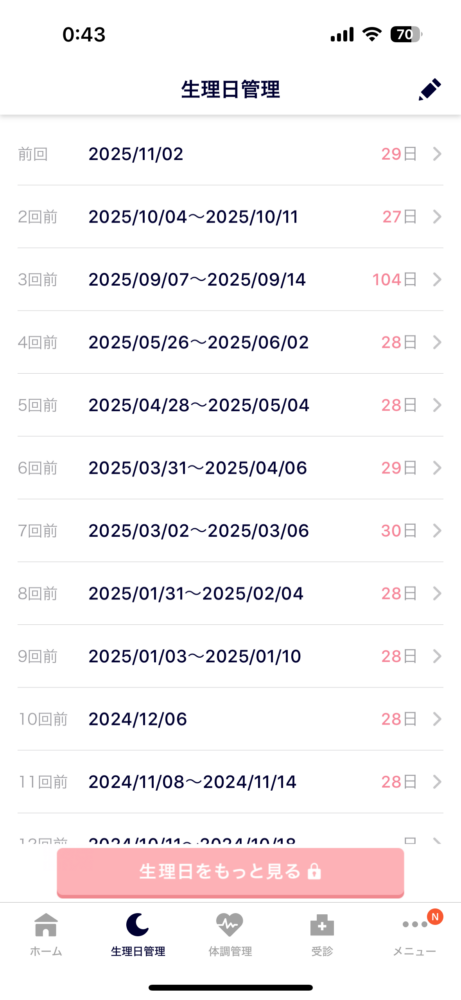 生理周期が安定していますか? 直近半年の生理開始日、生理周期日数、高温期日数(わかる範囲で)を教えてください。