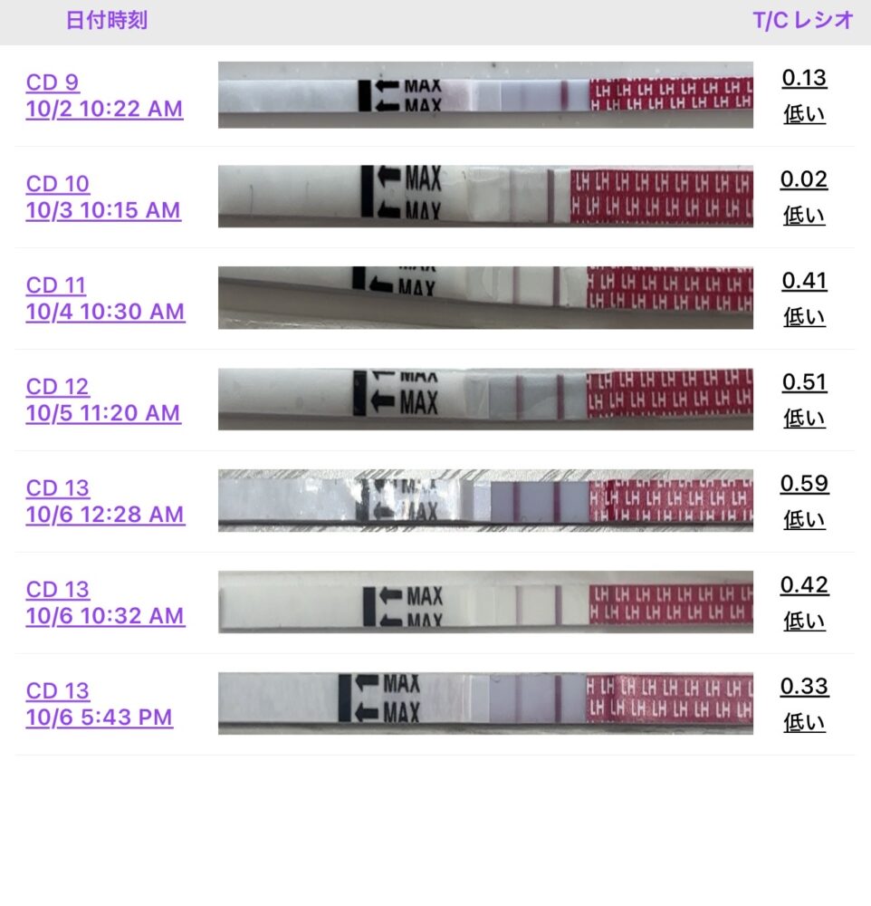 10/4から濃くなり、10/5~10/6朝は陽性反応です。