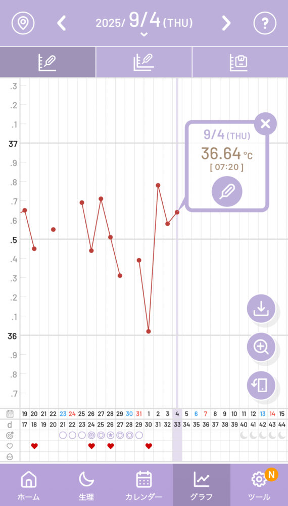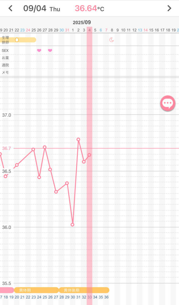 基礎体温は9/2(D31)から上昇しましたが、 しかし、理想な高温期の体温になっていないので、排卵はしていない可能性が高いと思います。
