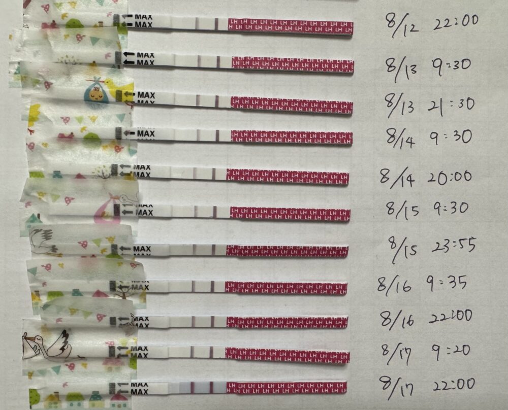 生理周期が長めで検査回数が多くなり大変だと思いますが、排卵検査薬は妊娠への近道です。排卵検査開始日から間を開けずに10~12時間間隔で1日2回の排卵検査薬か、1日1回の排卵検査薬(※間隔開けずに)と基礎体温の計測のセットで進めることをおすすめします。