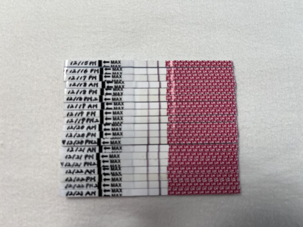 12/20から陽性反応になり、12/21は強陽性反応、12/22から薄くなりました。