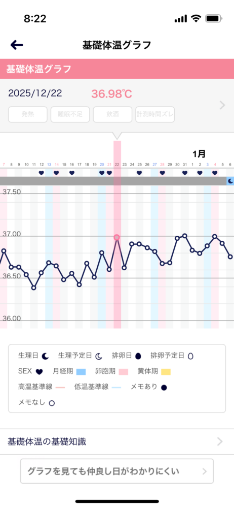 排卵検査薬から見て、12/22は予測排卵日になります。