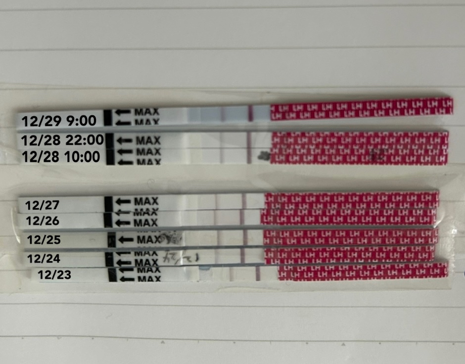 12/23から本日まで排卵検査薬をしようしています。 最終生理日が12/16〜12/19で基礎体温は12/29までしか測定できていません。