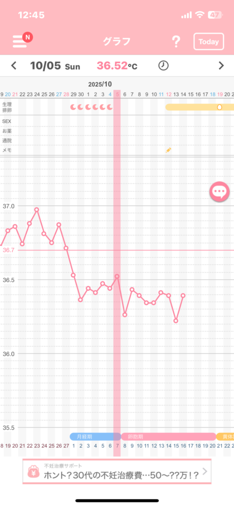 9月より妊活を再開しましたが上手くいかず、今回はこちらでお世話になろうと決めました!高温期、生理周期が少し乱れ始めた為、…