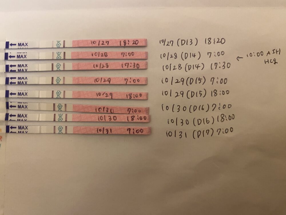 先生がおっしゃった通り、待ってみたら、陽性になりました! 4/30.5/1はタイミングをとりました。 今日は取らなくて大丈夫そうですかね?