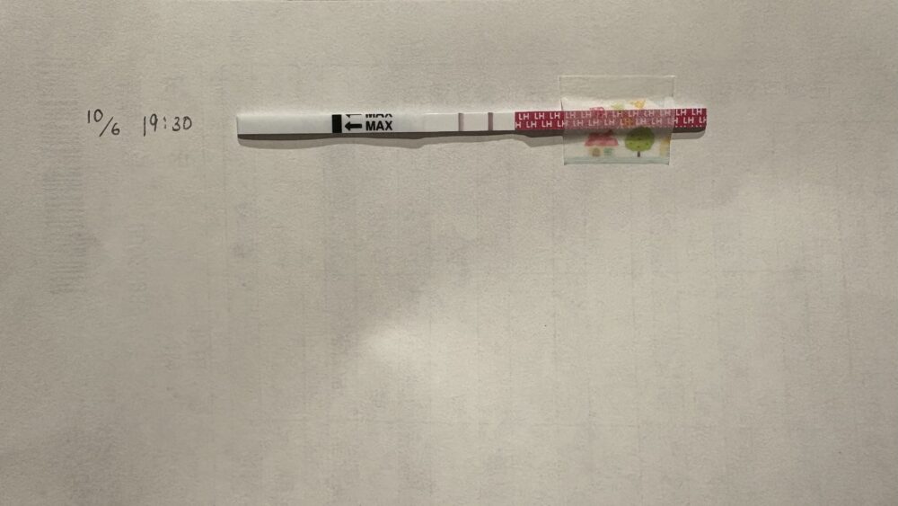 基準線に比べて判定線が薄いので、10/6(D18) 19:30は陰性反応です。