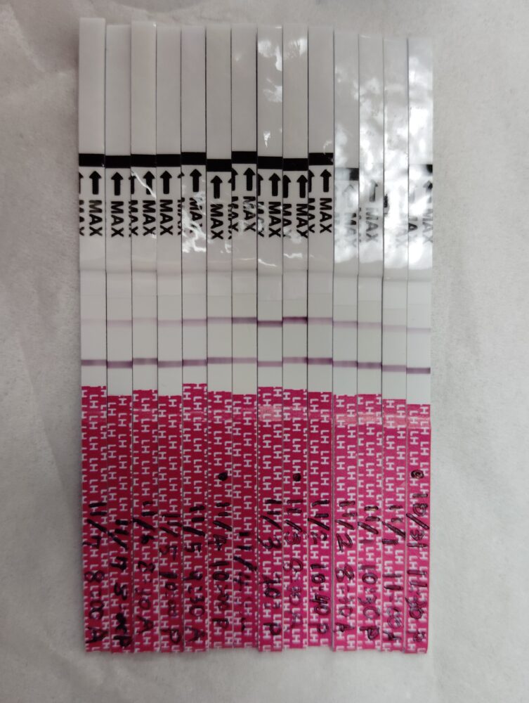 11/3朝~11/4朝は強陽性反応、11/4夜から薄くなりました。