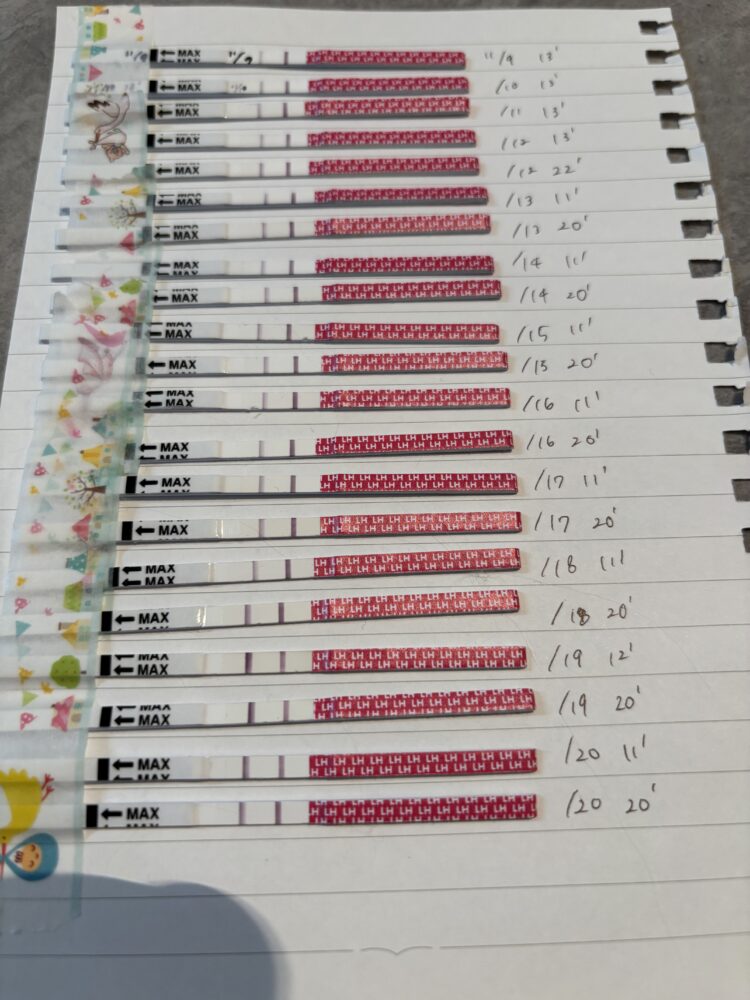 昨日はご助言ありがとうございました。 昨日(11/18)21時が若干濃くなった気がしたのでタイミングをとりました。 本日(11/19)12時は陽性になりました。 11/20はタイミングを取れない可能性があり、その場合は本日も取っておいた方が良いでしょうか? 11/21だと遅いという認識で合っていますでしょうか。
