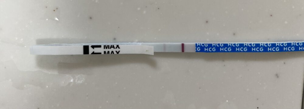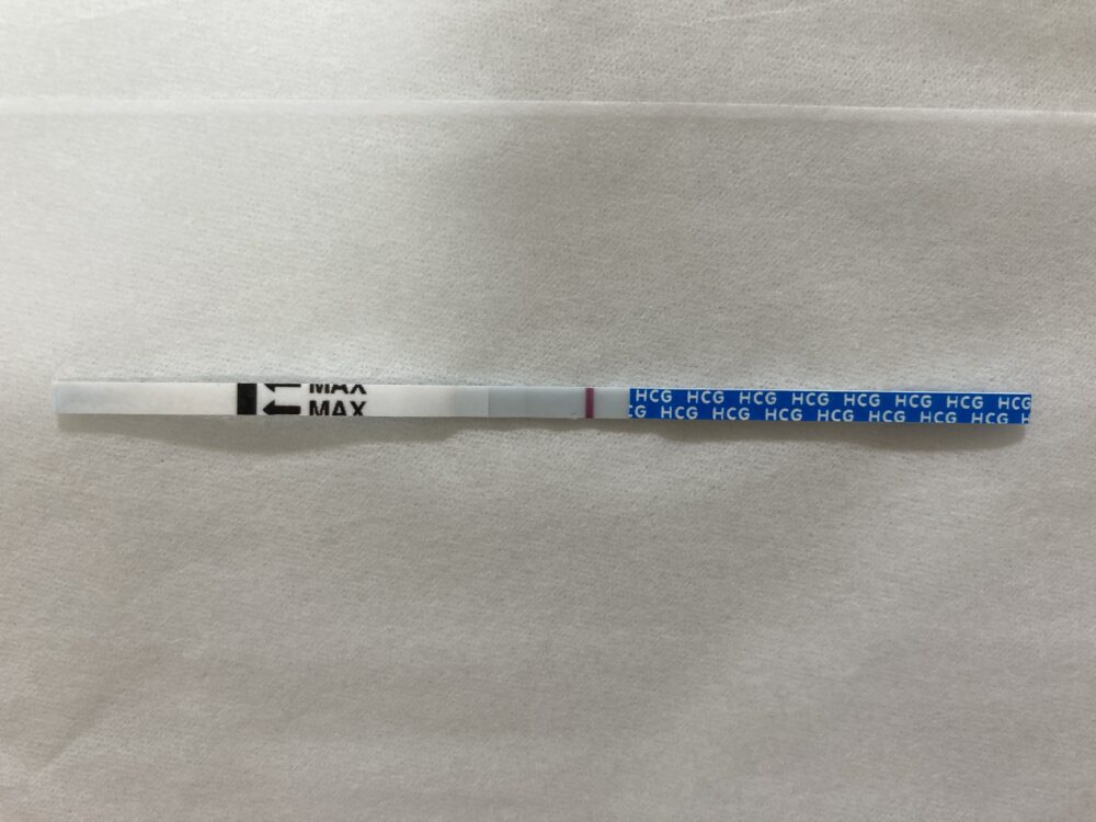28日が予測排卵日で、29日を高温期1日目と考えると、11月9日は高温期11日目に当たりますね。 とても薄いですが、判定線を確認できました。