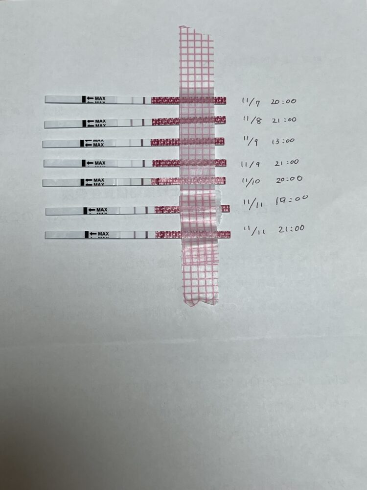 11/11も検査し、少しだけ濃くなりましたがまだ陰性でしょうか…。 念の為、今日もタイミングをとりました。