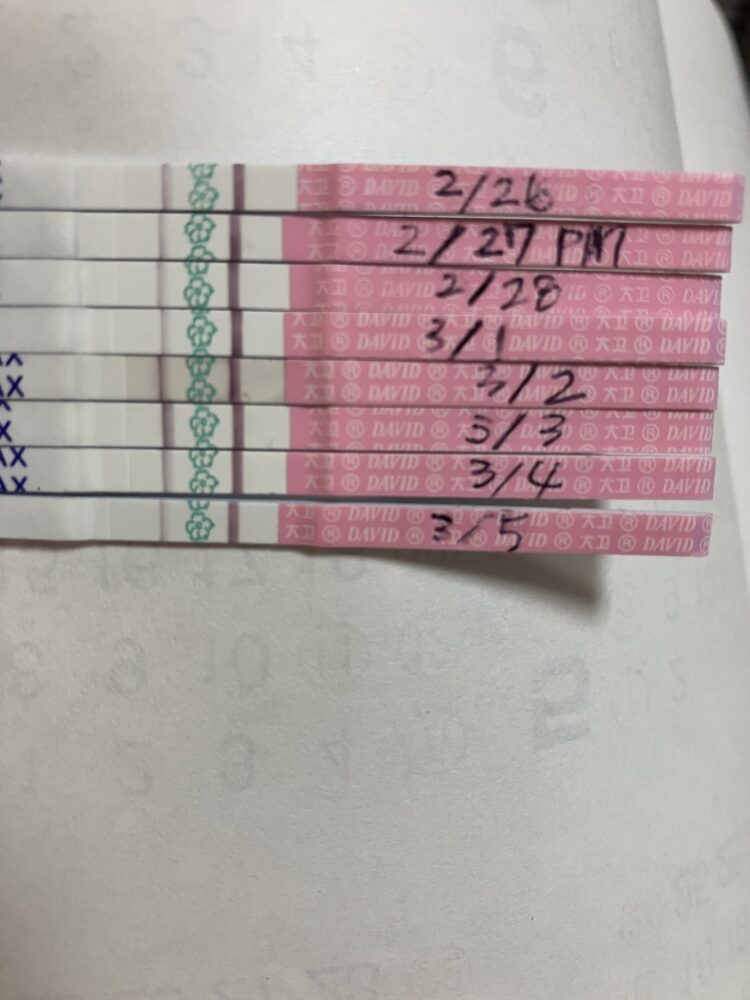 お世話になります。初めて投稿させていただきます。初めてDavidの排卵検査薬を使用しました。3人目の女の子希望です。Davidは、強陽性になるみたいですが、強陽性にはならず、、、むしろ陽性ラインも薄い気がしますが、この範囲だったら大丈夫ですか?基礎体温は二層になっています。女の子は、排卵日2日前だと聞いたのですが、タイミングは28日の夜にとりました。こちらの場合、何日からタイミングをとった方が良かったですか?
