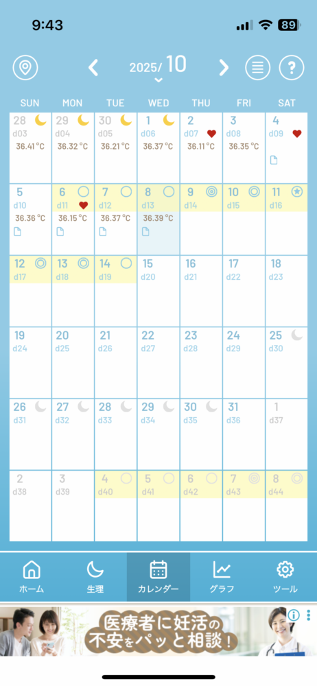 今回の排卵予定日は10/11でした。 排卵予定日の画像と直近の生理周期の画像を送ります。 確認よろしくお願いします。