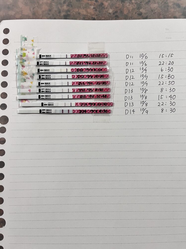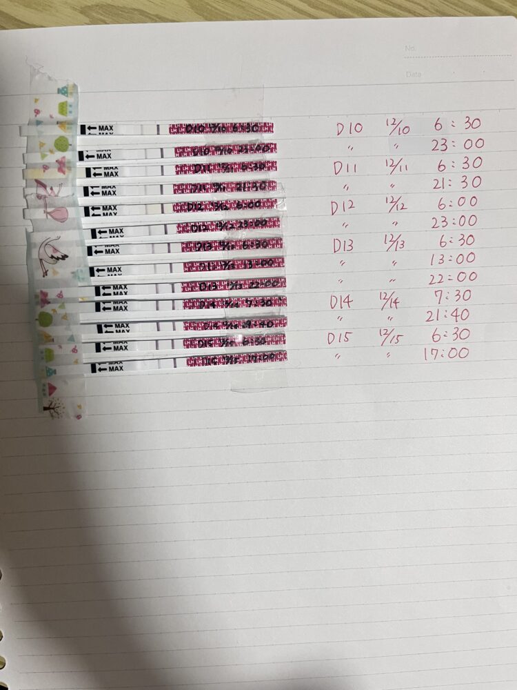 10/8(D13)朝から濃くなってきました。排卵に近づいている可能性が高いです。